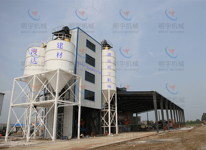 預(yù)拌砂漿生產(chǎn)線,主要由原料儲(chǔ)存?zhèn)}、配料系統(tǒng)、待混倉(cāng)、提升機(jī)、主混合機(jī)(3-6立方)、自動(dòng)稱量包裝機(jī)(適應(yīng)于閥口袋)、散裝系統(tǒng)、除塵器、電控系統(tǒng)等組成。適應(yīng)于普通干混砌筑砂漿的生產(chǎn)(如:抹灰砂漿、砌筑砂漿 地坪砂漿、裝飾砂漿、防水砂漿等)?;旌蠙C(jī)內(nèi)膽和機(jī)件全部采用專用耐磨材料制造,耐磨性特別強(qiáng),使用壽命長(zhǎng),具有國(guó)內(nèi)同類產(chǎn)品一定的優(yōu)越性。整套設(shè)備性能穩(wěn)定,物料混合均勻,具有能耗低、投資少、見(jiàn)效快、占地小、操作簡(jiǎn)單等諸多優(yōu)點(diǎn)。根據(jù)配置不同,可以實(shí)現(xiàn)年產(chǎn)10-30萬(wàn)噸預(yù)拌砂漿。