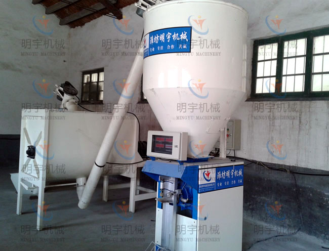 工人將原料依次投入加料斗內(nèi),由螺旋上料機將物料輸送到臥式無重力攪拌機,混合2-3分鐘(根據(jù)不同物料混合時間略有差別)?;旌虾玫奈锪辖?jīng)出料螺旋蛟龍輸送到成品倉,成品倉下部配全自動稱量包裝機,將混合的成品裝袋包裝。在包裝過程中,可以重復(fù)上面投料、攪拌等過程,以實現(xiàn)流水線作業(yè),提供生產(chǎn)效率。