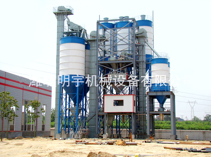 大型預(yù)拌砂漿生產(chǎn)線,主要由原料儲(chǔ)存?zhèn)}、配料系統(tǒng)、待混倉(cāng)、2-6立方主混合機(jī)、原料儲(chǔ)存?zhèn)}、輸送機(jī)、電腦自動(dòng)計(jì)量包裝機(jī)(適應(yīng)于閥口袋)、電控系統(tǒng)等組成。適應(yīng)于普通干混砌筑砂漿的生產(chǎn)(如:抹灰砂漿、砌筑砂漿地坪砂漿、裝飾砂漿、防水砂漿等)?;旌蠙C(jī)內(nèi)膽和機(jī)件全部采用專用耐磨材料制造,耐磨性特別強(qiáng),使用壽命長(zhǎng),具有國(guó)內(nèi)同類產(chǎn)品不可比擬的優(yōu)越性,在同行業(yè)中占據(jù)重要地位。整套設(shè)備性能穩(wěn)定,物料混合均勻,具有能耗低、投資少、見(jiàn)效快、占地小、操作簡(jiǎn)單等諸多優(yōu)點(diǎn),5-8人即可操作,每次可以混合砂漿4-6噸,每小時(shí)可生產(chǎn)20-40噸左右。